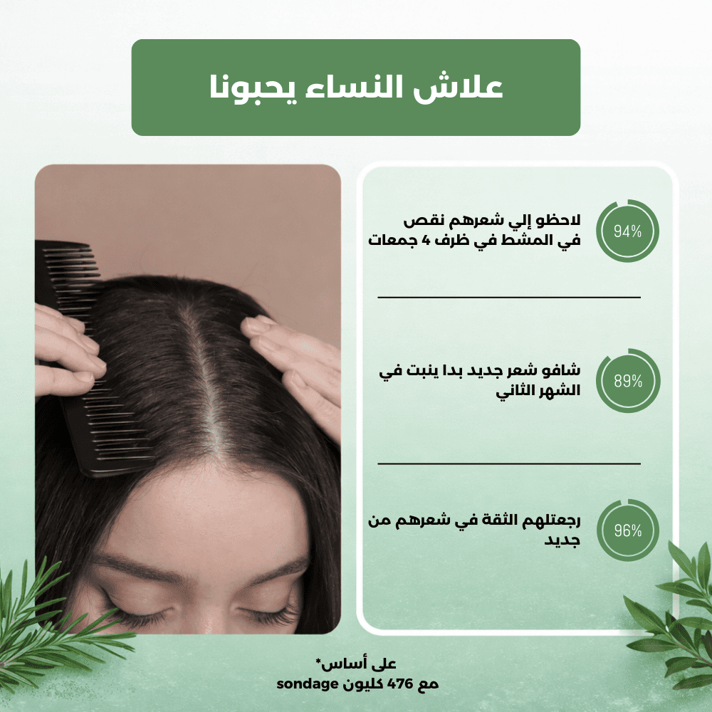 تقنيتنا المتطورة تحفز بصيلات الشعر و تخليها تسترجع حيويتها المزيج الفريد من المكونات الطبيعية يغذي ويصلح الشعر، مما يعزز نمو أقوى وأسرع